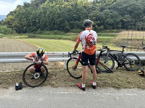 9.残り3kmでB列車ごっさんのリアタイヤがパンク