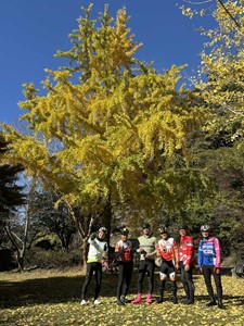 14.君ケ野ダムのイチョウ絨毯を堪能したB列車