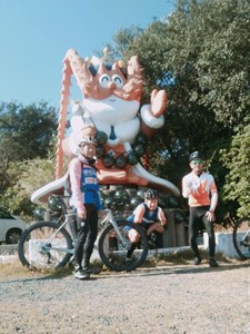 4.五ヶ所でA列車に合流したタクヤさんが交え 浜島のシンボル伊勢エビの前で集合