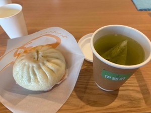 11.11時までモーニングサービスで伊勢茶に豚まんが