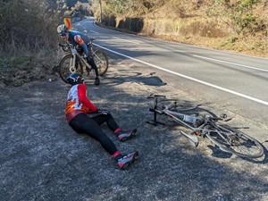 4.朝熊道の上りで久しぶりに参加したごんぞーさんが 脚痙攣でもんどりうつ