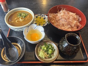8.全員が鰹節丼とカレーうどんの日替わり定食1100円 を食べました